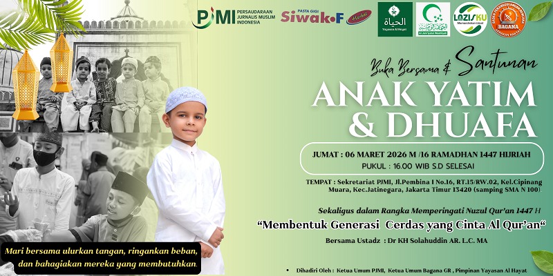 Lembaga Amil Zakat Infaq dan Sedekah (LAZIS) Keluarga Besar Pelajar Islam Indonesia KB-PII dan Ormas Keagamaan Al Washliyah ikut berpartisipasi dalam kegiatan yang diselenggarakan Persaudaraan Jurnalis Muslim Indonesia(PJMI). Yakni “Buka bersama dan santunan kepada 40 anak yatim dan duafa” yang akan diselenggarakan Jumat 6 Maret 2026, bertepatan dengan peringatan Nuzulul Quran, di Sekretariat PJMI, Jl. Pembina 1. No 16, Kelurahan Cipinang Muara, Kampung Melayu, Jakarta Timur, Itu dikatakan Ketua Umum PJMI Ismail Lutan di Jakarta, Senin 2/3.