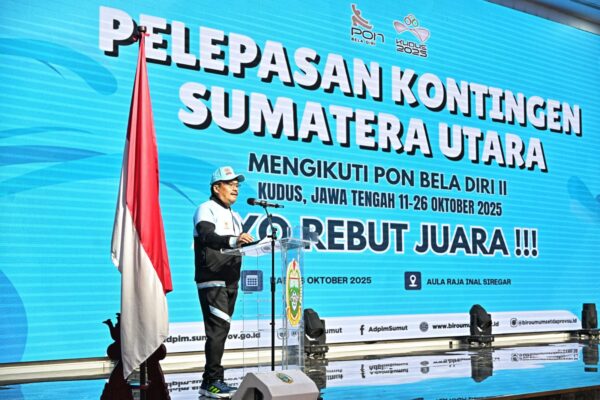 “Sumut memang gudangnya atlet bela diri, ada JK Saragih, Lamhot Tambunan, Rizky Nurhoman, Lindswel, dan masih banyak lagi, jadi saya percaya kalian akan membawa harum nama Sumut,” kata Togap Simangunsong usai melepas Kontingen Sumut untuk PON Bela Diri di Aula Raja Inal Siregar, Kantor Gubernur Sumut, Jalan Diponegoro Nomor 30, Medan, Rabu (8/10/2025).