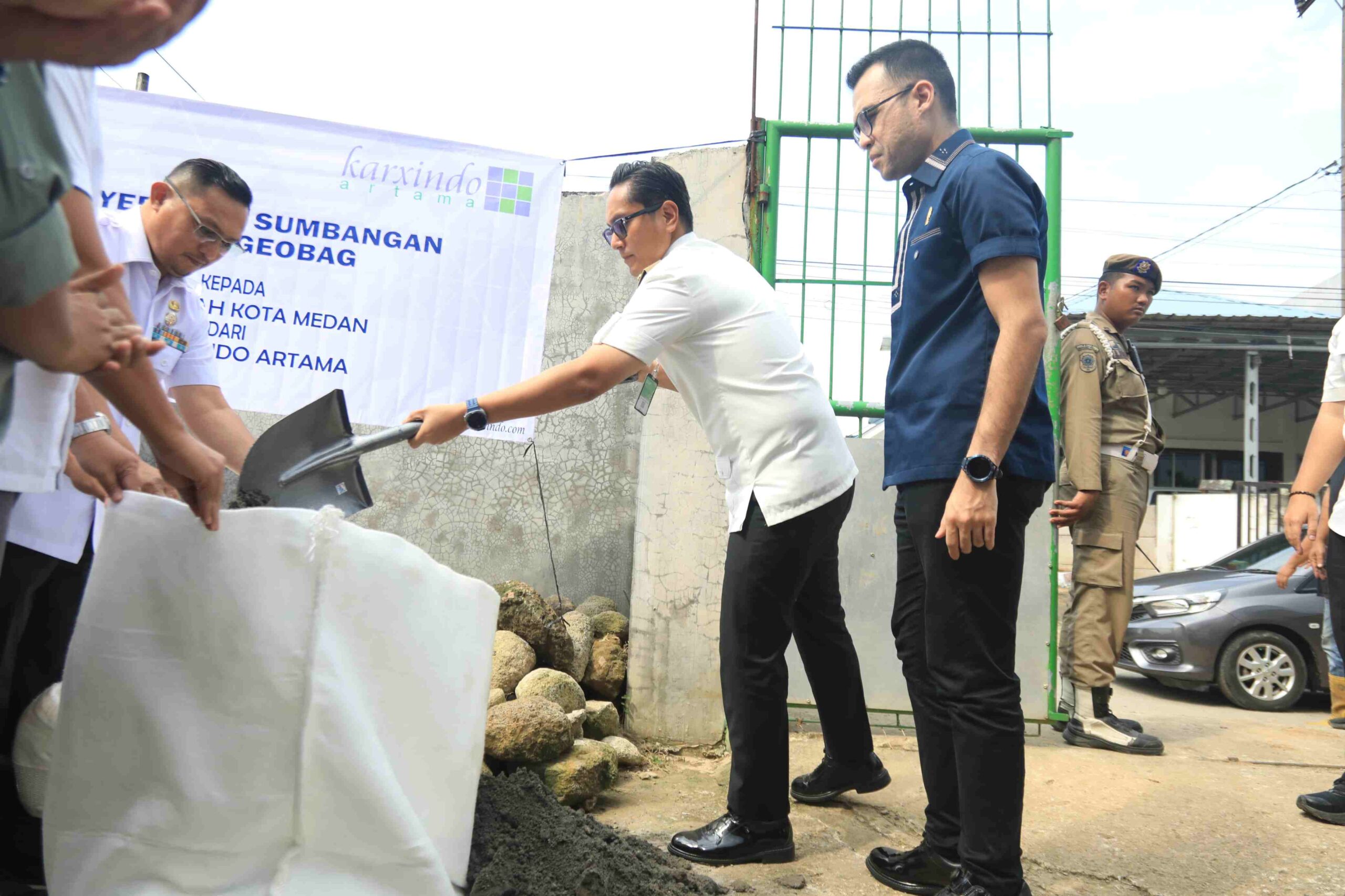 Wali Kota Medan, Rico Tri Putra Bayu Waas, menerima bantuan 10.000 Geobag dari PT Karxindo Artama untuk membantu penanggulangan banjir di Kota Medan. Bantuan ini diterima Rico Waas secara simbolis di Jalan Sumber Amal, Kelurahan Harjosari II, Kecamatan Medan Amplas, tepatnya di pinggiran sungai Sei Batuan, Rabu (24/12/2025)