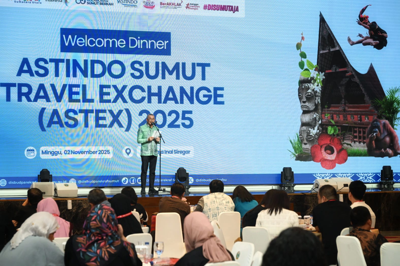 Hal itu disampaikannya dalam sambutan pada acara Jamuan Makan Tamu Astex 2025, yang digelar oleh DPD Asosiasi Travel Agent Indonesia (Astindo) Sumut di Aula Raja Inal Siregar, Kantor Gubernur Sumut, Jalan Diponegoro, Medan, Minggu (2/11/2025) malam. Sambutan tersebut dibacakan oleh Plh Sekdaprov Sumut, Sulaiman Harahap.