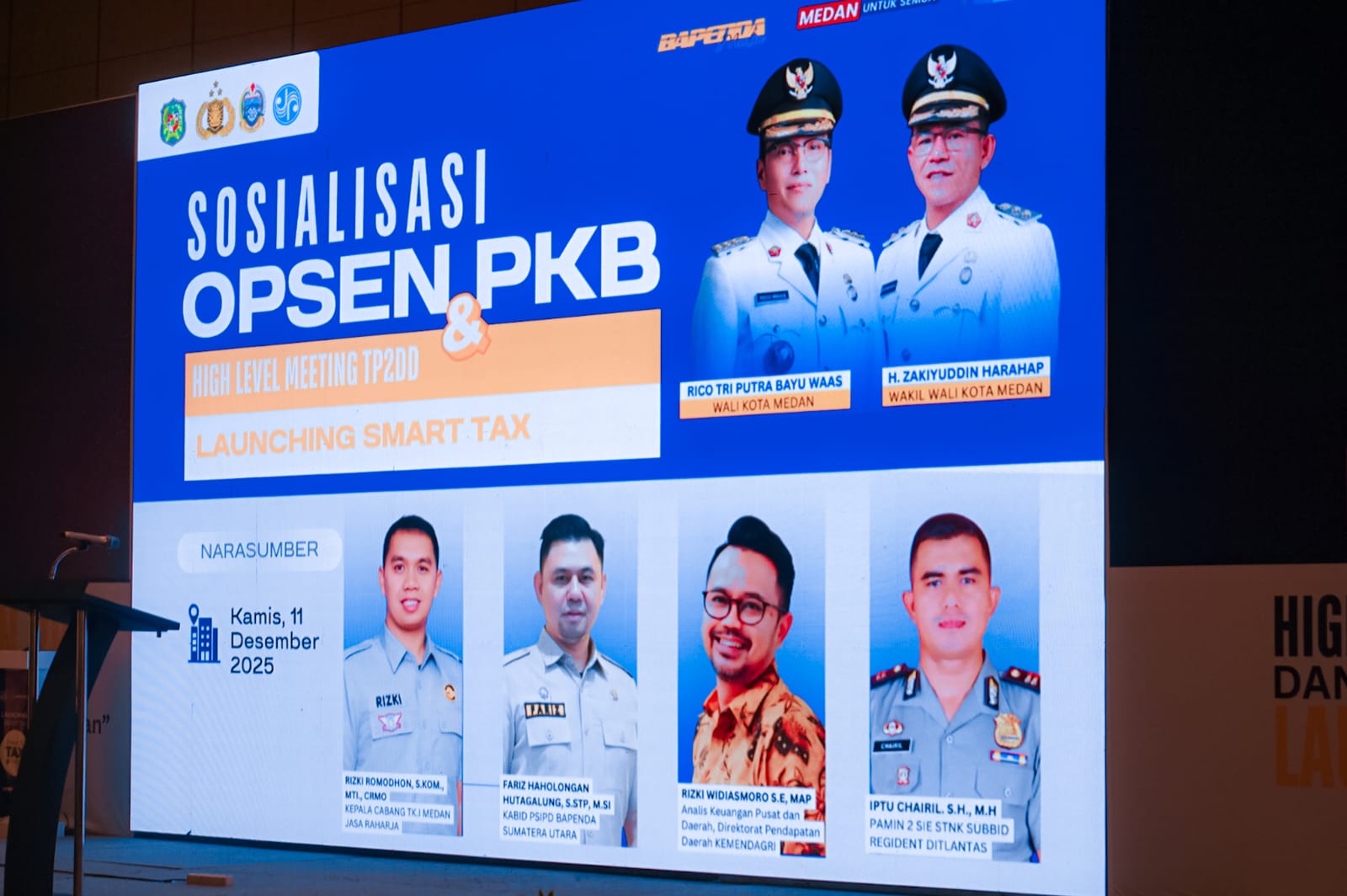 Wali Kota Medan, Rico Tri Putra Bayu Waas terus berkomitmen untuk menjadikan Medan sebagai kota yang kuat dan mandiri secara financial. Komitmen itu ditegaskan Rico Waas saat membuka acara Sosialisasi Opsen Pajak Kendaraan Bermotor (PKB) sekaligus Launching Smart Tax yang diselenggarakan di Hotel Arya Duta, Kamis (11/12/2025).